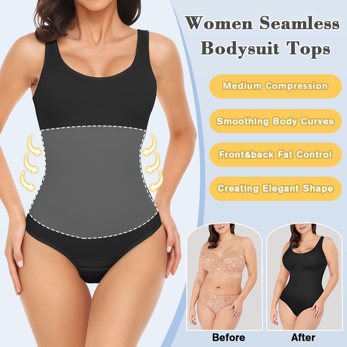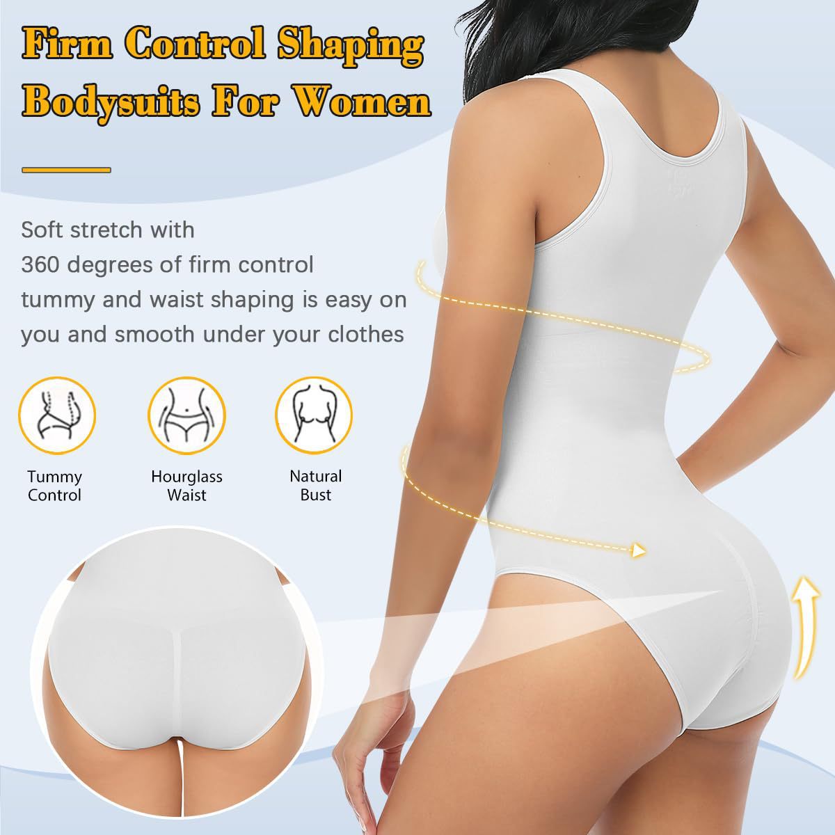 Body Shaping: Provides butt lift and abdominal control for a slimming effect.